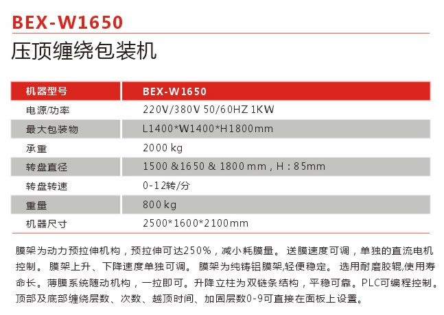 规格型号:BEX-W1650